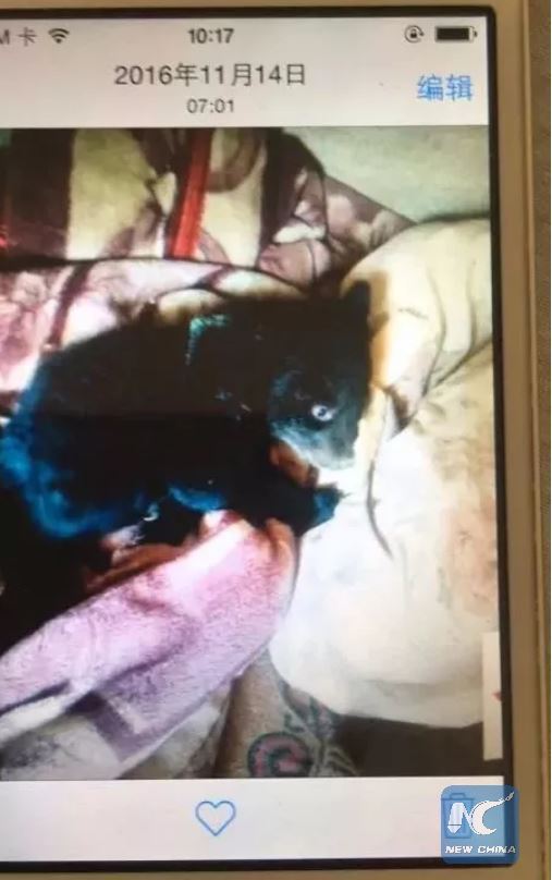 "I heard crying sounds like a little puppy and found something like a black dog lying on the ground," Yang recalled. "We thought its mother would come to find it, so we just walked away."
