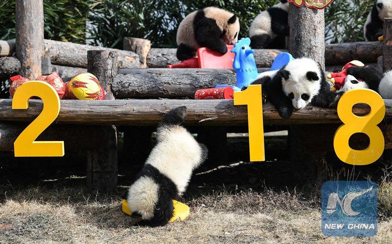 Panda cubs at Sichuan's Wolong National Nature Reserve, Feb. 15, 2018