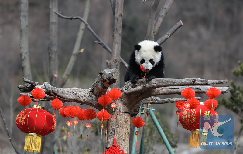 A panda cub at Sichuan's Wolong National Nature Reserve, Feb. 15, 2018