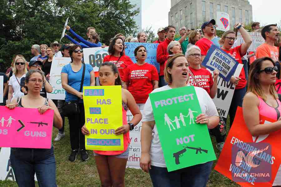 Hundreds of thousands of people join the nationwide "March For Our Lives" protest against gun violence in Houston, Texas, the United States, on March 24, 2018. (Xinhua/Song Qiong)