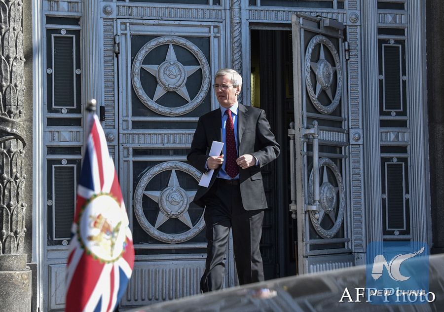 British ambassador to Russia Laurie Bristow leaves the Russian Foreign Ministry headquarters in Moscow on March 30, 2018. (AFP PHOTO)