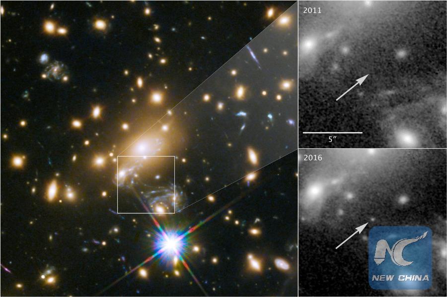 WASHINGTON, April 2 (Xinhua) -- American astronomers have captured the most distant normal star ever observed, some 9 billion light years from Earth, thanks to a rare cosmic alignment.