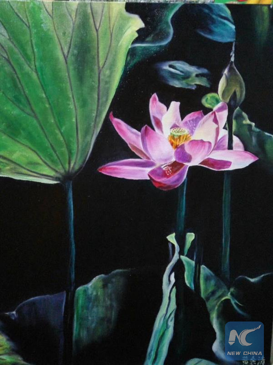 A painting of water lily drawn by Huang Yuqing. (Xinhua)