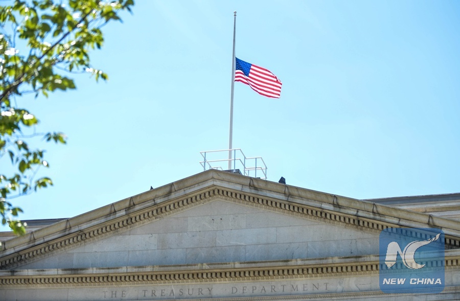 File Photo: The U.S. national flag flies at half-mast at the Treasury Department to mourn the victims of the mass shooting at a nightclub in Orlando, in Washington D.C., the United States, June 13, 2016. (Xinhua/Bao Dandan)