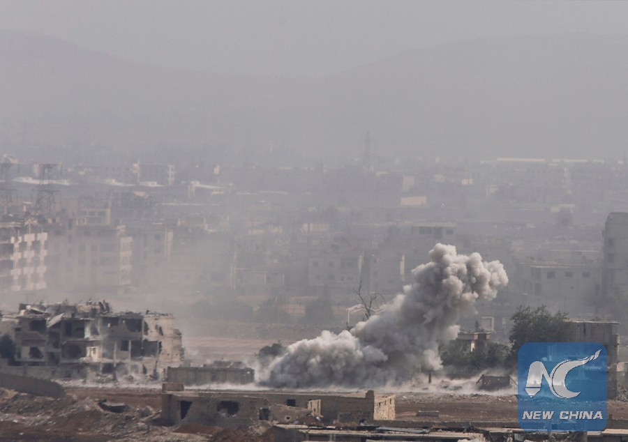 Smoke rises from the Yarmouk Palestinian camp in Damascus, Syria April 28, 2018. (Xinhua/REUTERS)