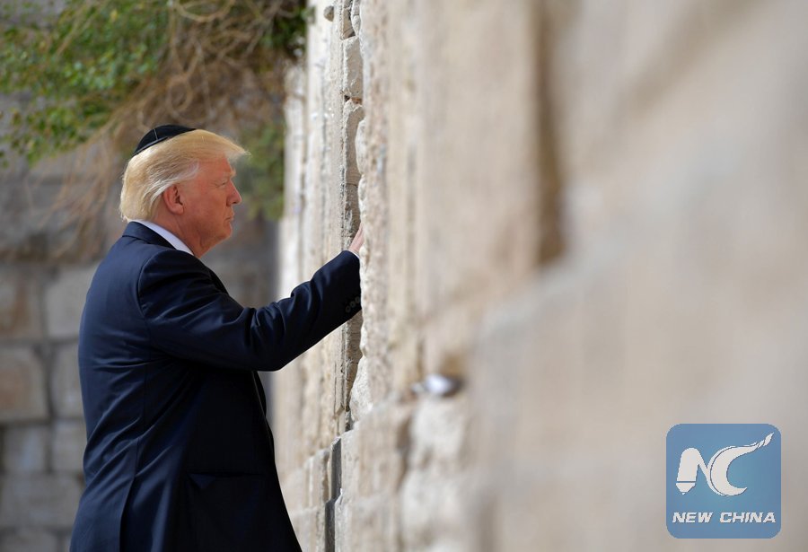 U.S. President Donald Trump visits the Western Wall in Jerusalem's Old City on May 22, 2017. (Xinhua/AFP)