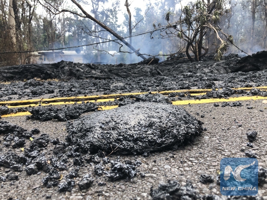 Volcanic debris are seen on a road in Leilani Estate, Hawaii, U.S., May 9, 2018. According to reports of the Hawaii State government, eruptions of the Kilauea Volcano had forced the evacuation of thousands of people. (Xinhua/Tao Xiyi)