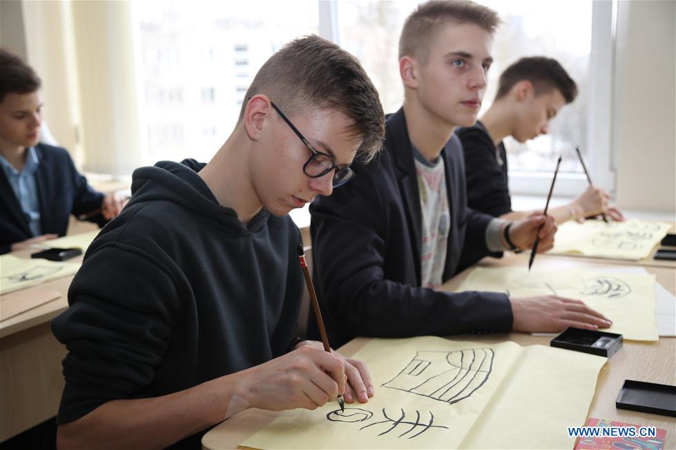Students of the Confucius Institute at the Vilnius University write Chinese calligraphy in Vilnius, Lithuania, on Feb. 13, 2018. In recent years, a surge in the learning of the Chinese language has been observed around the world. Confucius institutes and classrooms worldwide play an undeniable role in the process of bringing the Chinese language and culture closer to the international community.