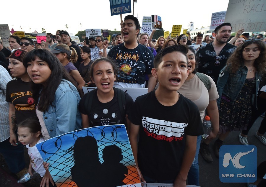 File photo taken on June 14, 2018 shows that protestors chant outside the Metropolitan Detention Center where the U.S. Immigration and Customs Enforcement detainees are held, during a 'Families Belong Together March' against the separation of children of immigrants from their parents, in Los Angeles, California, the United States. (AFP Photo)