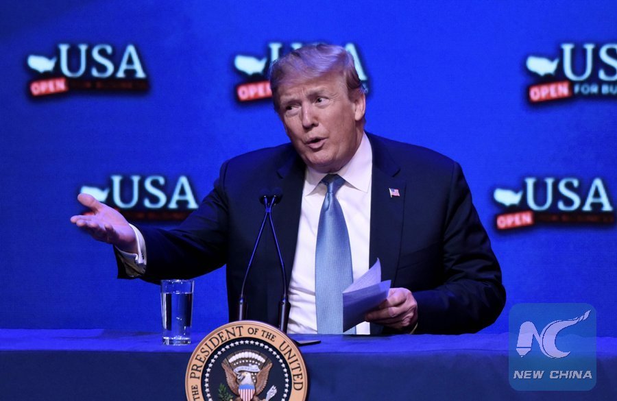 WASHINGTON, June 25 (Xinhua) -- U.S. President Donald Trump on Monday slammed a restaurant named Red Hen that asked White House Press Secretary Sarah Huckabee Sanders to leave because she worked and spoke for him.