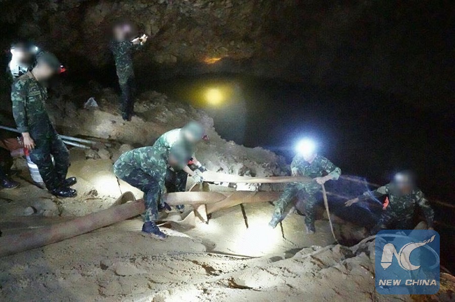 Royal Thai Navy SEALs take part in rescue operation for 12 Thai teenagers and their football coach in northern Thailand's Chiang Rai Province, June 30, 2018. (Xinhua/Thai Royal Navy)