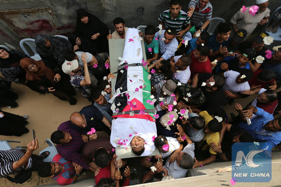 GAZA, July 14 (Xinhua) -- The Palestinian Health Ministry in Gaza said that two Palestinian children were killed and 14 injured in the latest Israeli airstrike on Saturday afternoon in Gaza.