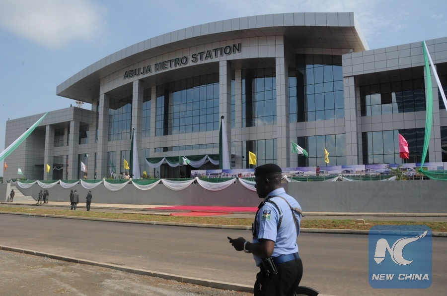 A local policeman walks past the Abuja Metro Station in Abuja, Nigeria, July 12, 2018. (Xinhua/Zhang Baoping)