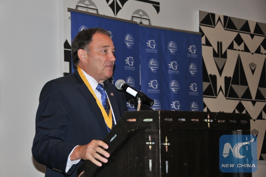 Utah Governor Gary Herbert delivers a speech at the International Cooperation Day Forum in Santa Fe, New Mexico, the United States, July 19, 2018. (Xinhua/Liu Liwei)