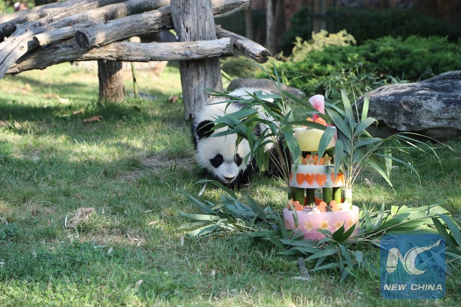 "I know there are live footage on TV, but I prefered coming and see Yuan Meng with my own eyes. I have already visited the giant pandas several times before. Yuan Meng has grown well and it is very beautiful and cute, I took a lot of photos," a visitor who gave her name as Bourreau told Xinhua while enjoying the cake with her husband.