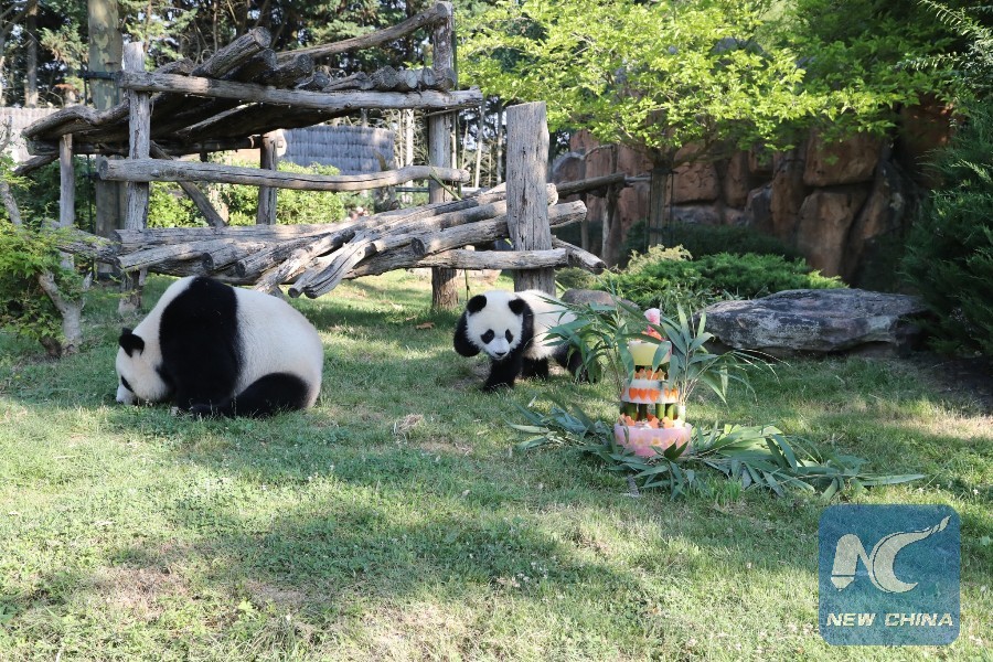 PARIS, Aug. 4 (Xinhua) -- Yuan Meng, France's first ever giant panda cub, celebrates on Saturday its first anniversary at Beauval zoo in central France, where large crowds joined the super star panda's birthday bash despite very hot weather.