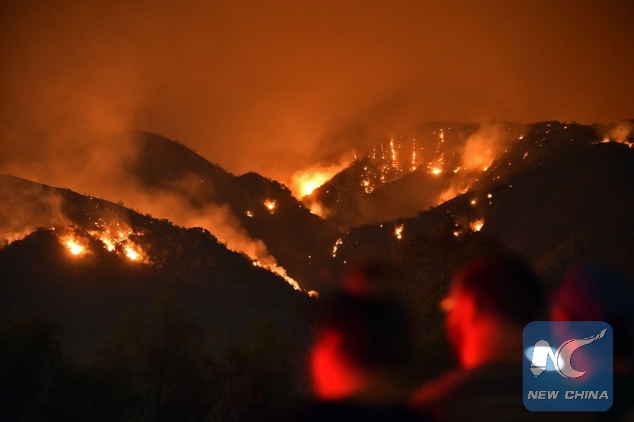 LOS ANGELES, Aug. 10 (Xinhua) -- A Southern California wildfire continues to rage and is threatening more populated areas despite frantic efforts to contain it.