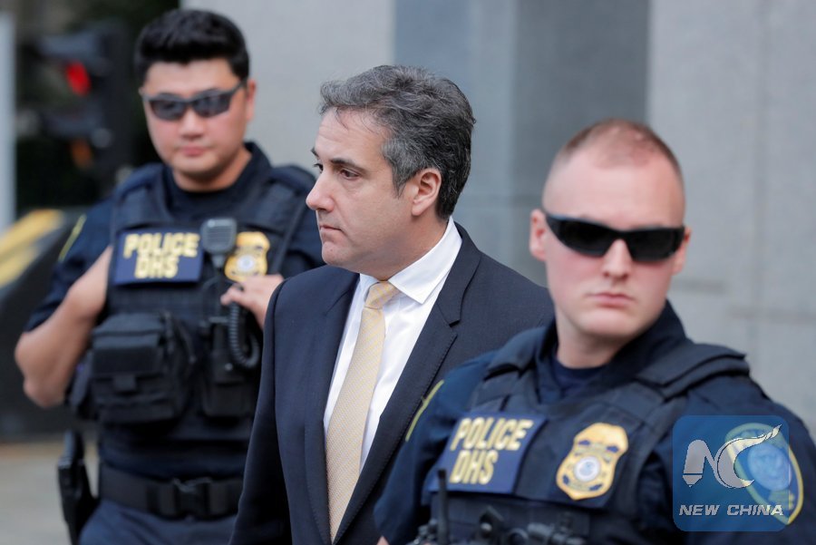 WASHINGTON, Aug. 21 (Xinhua) -- U.S. President Donald Trump's former longtime personal attorney Michael Cohen on Tuesday pleaded guilty to eight criminal charges including campaign-finance violations, tax evasion and bank fraud at a federal court in Manhattan, multiple media reports said.