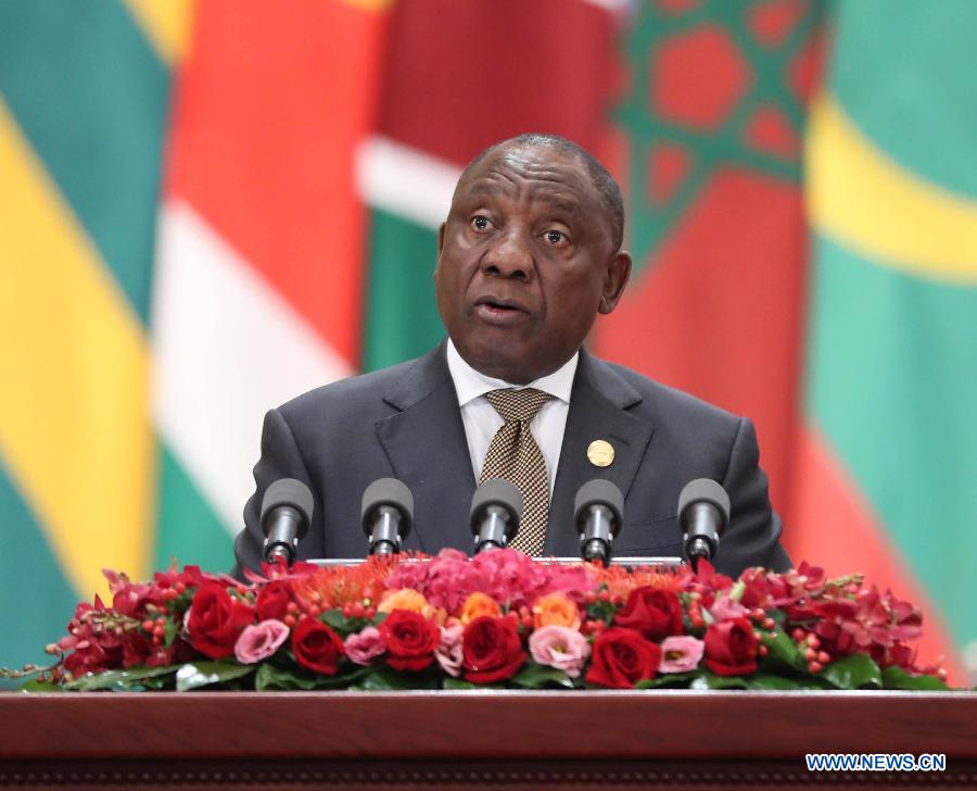 BEIJING, Sept. 3 (Xinhua) -- South African President Cyril Ramaphosa delivered a speech at the opening ceremony of the 2018 Beijing Summit of the Forum on China-Africa Cooperation (FOCAC) on Monday.