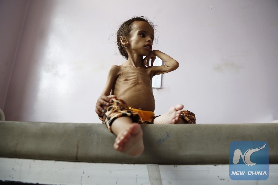 SANAA, Sept. 4 (Xinhua) -- Wijdan Mohammed Hussein is only four years old, but her face looks ten times older than age. With a tiny and skeletal body, she cannot even sit by herself.