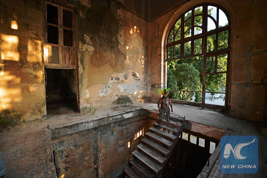Native Korubo Isolado, from the Brazilian state of Acre, poses at the abandoned and crumbling Indian Museum complex, near the National Museum where on late Sunday a fire caused an irreparable loss for the indigenous cultures, in Rio de Janeiro, Brazil, on September 4, 2018. (AFP photo)
