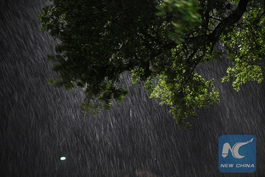 A tree sways in the storm as Hurricane Florence comes ashore in Wilmington, North Carolina, the United States, on Sept. 13, 2018. (Xinhua/Liu Jie)