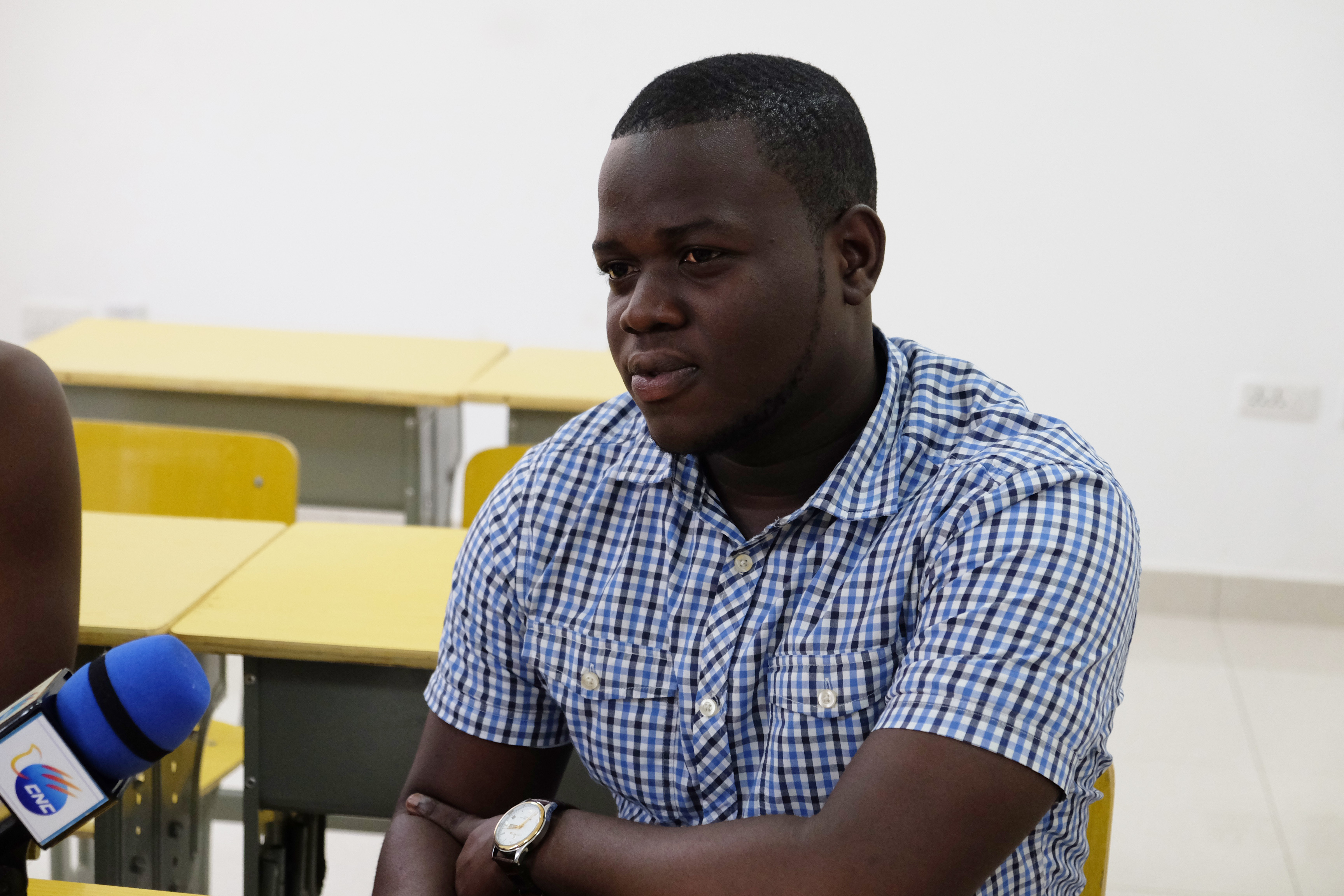 Nathan Ankrah, a student from University of Ghana, receives an interview with Xinhua News Agency in Accra, capital of Ghana, Sept. 10, 2018.