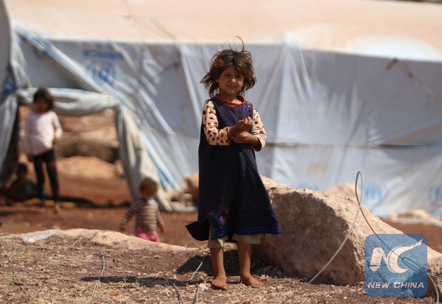 File Photo: A displaced Syrian girl stands outside her tent in a camp in Kafr Lusin near the border with Turkey in the northern part of Syria's rebel-held Idlib province on Sept. 9, 2018. (Xinhua/AFP)