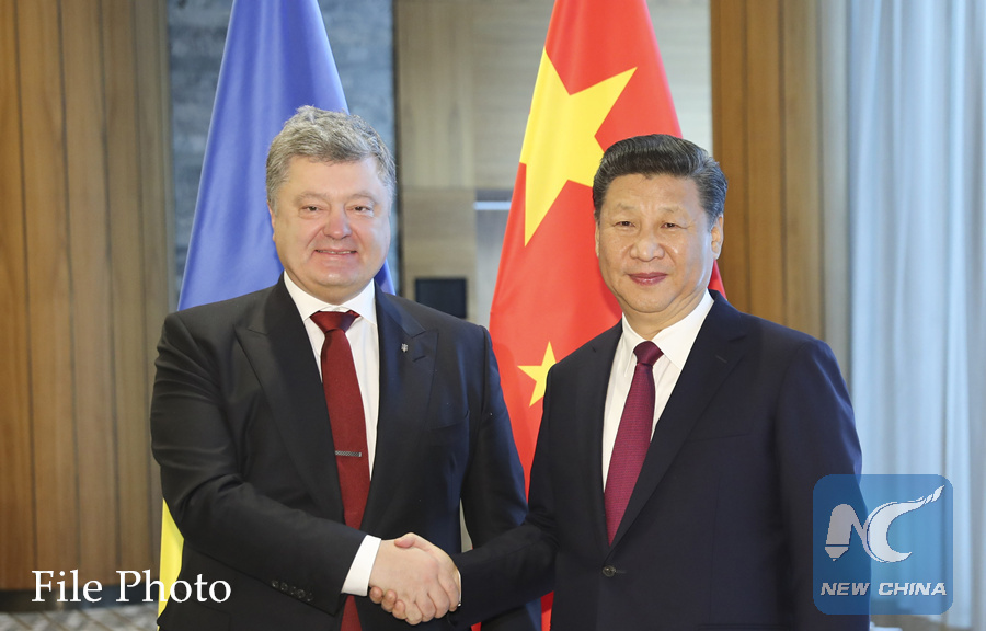 Chinese President Xi Jinping (R) meets with Ukrainian President Petro Poroshenko in Davos, Switzerland, Jan. 17, 2017. (Xinhua/Ding Lin)