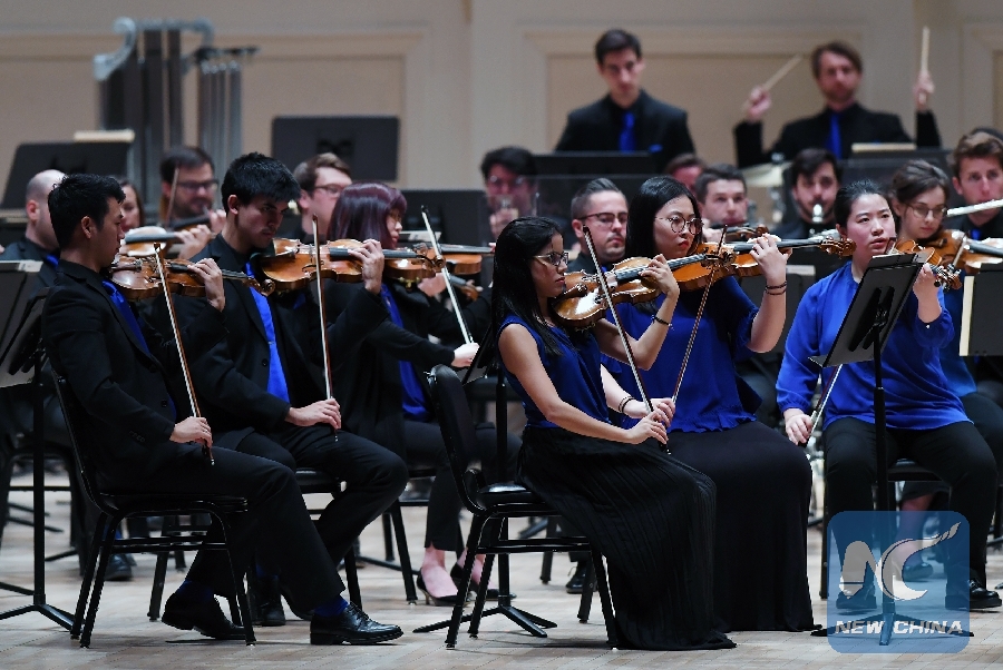 The Orchestra stages a closing concert of China Now Music Festival at Carnegie Hall in New York, the United States, on Oct. 22, 2018. (Xinhua/Li Rui)