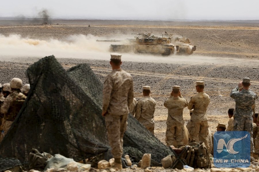 File Photo: U.S. soldiers participate in Exercise Eager Lion at the Jordan-Saudi Arabia border, south of Amman May 18, 2015. (Xinhua/REUTERS)