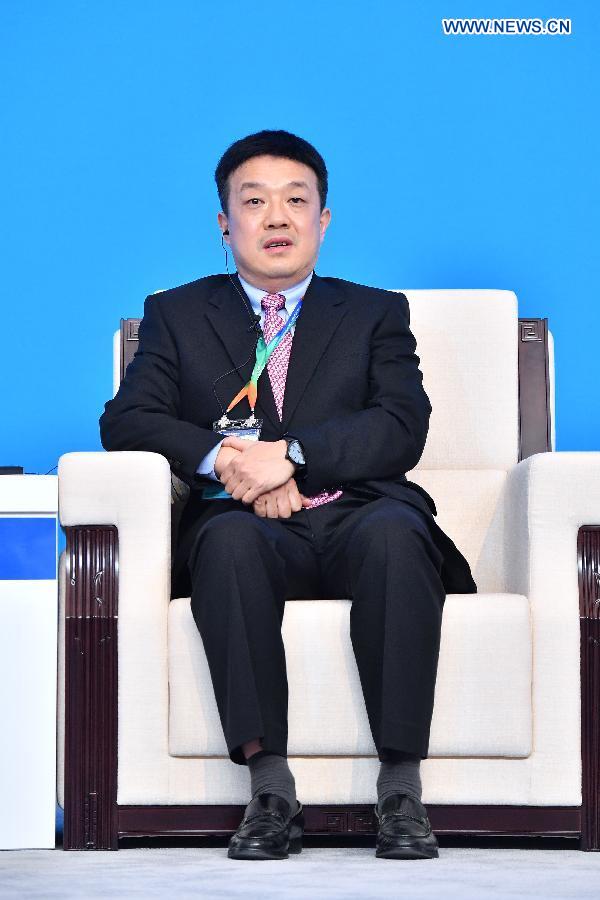 Jun Lyu, chairman of the board of China National Cereals, Oils and Foodstuffs Corporation (COFCO), speaks at the Parallel Session on Trade and Investment of the Hongqiao International Economic and Trade Forum in Shanghai, east China, Nov. 5, 2018.(Xinhua/Li Xin)