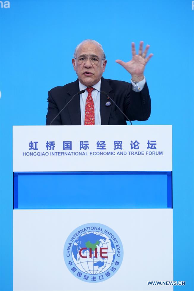 Organization for Economic Cooperation and Development Secretary-general Angel Gurria speaks at the Parallel Session on Trade and Innovation of the Hongqiao International Economic and Trade Forum in Shanghai, east China, Nov. 5, 2018.