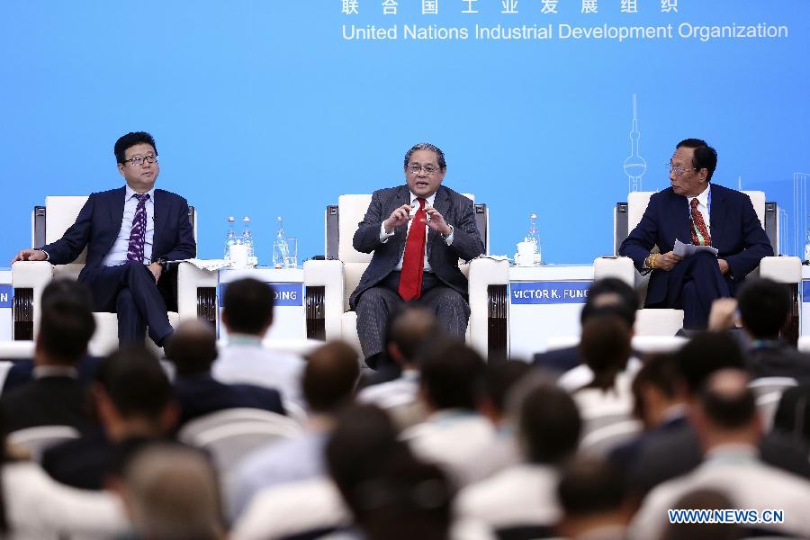 William Ding (L), chairman and CEO of NetEase Inc., Victor K. Fung (C), group chairman of Fung Group, and Terry Gou, founder and CEO of Foxconn Technology Group, discuss at the Parallel Session on Trade and Opening of the Hongqiao International Economic and Trade Forum in Shanghai, east China, Nov. 5, 2018. (Xinhua/Yin Gang)