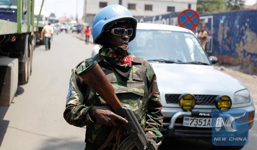File Photo: A UN peacekeeper patrols near the border crossing point between Rwanda and the Democratic Republic of Congo in Goma Aug. 29, 2013. (Xinhua/REUTERS)