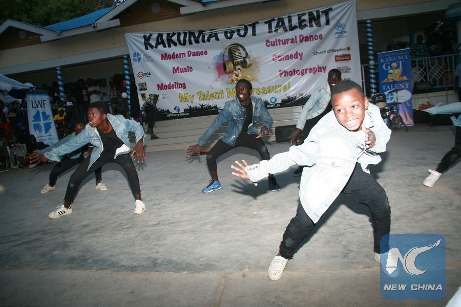 Participants dance during the 5th Edition of Kakuma Got Talent finals at Kakuma Refugee Camp in Kakuma, Kenya, Dec. 8, 2018.(Xinhua/Charles Onyango)