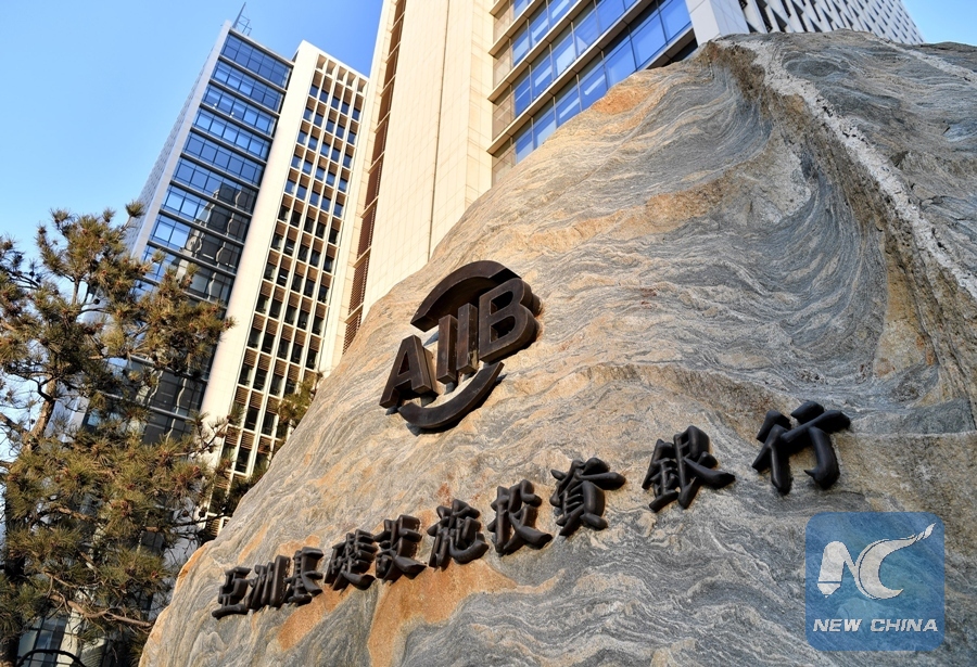 Photo taken on Jan. 12, 2018 shows a sign of the Asian Infrastructure Investment Bank (AIIB) in Beijing, capital of China. (Xinhua/Li Xin)