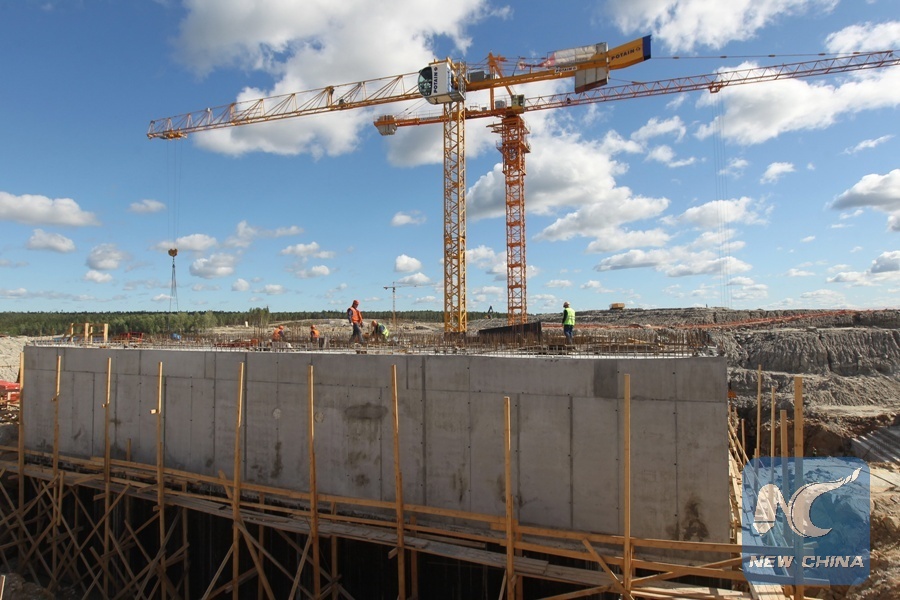 The construction site of the Beloporozhskaya hydropower plant, the first project in Russia financed by the BRICS New Development Bank, is seen near the Kem river, in the Republic of Karelia, northwest Russia, Aug. 15, 2017. (Xinhua/Lu Jinbo)