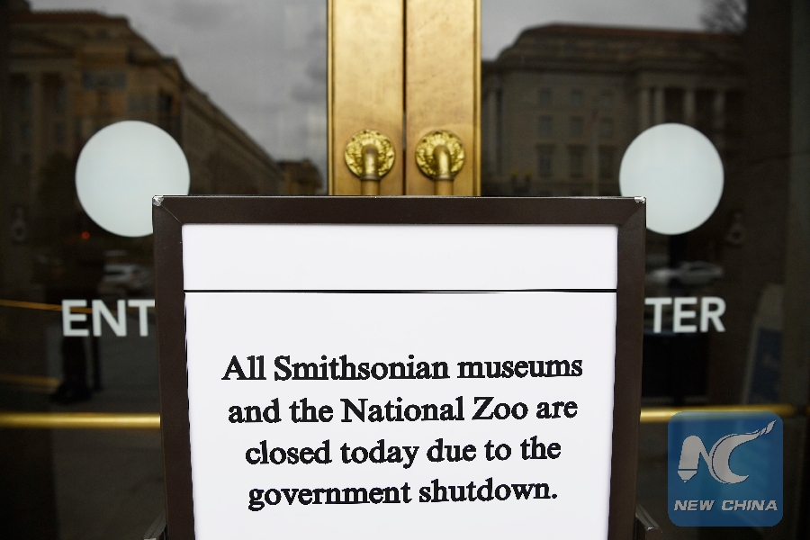 WASHINGTON, Jan. 2 (Xinhua) -- The 19 Smithsonian museums and the National Zoo in Washington D.C. closed their doors on Wednesday as the partial U.S. government shutdown dragged on.
