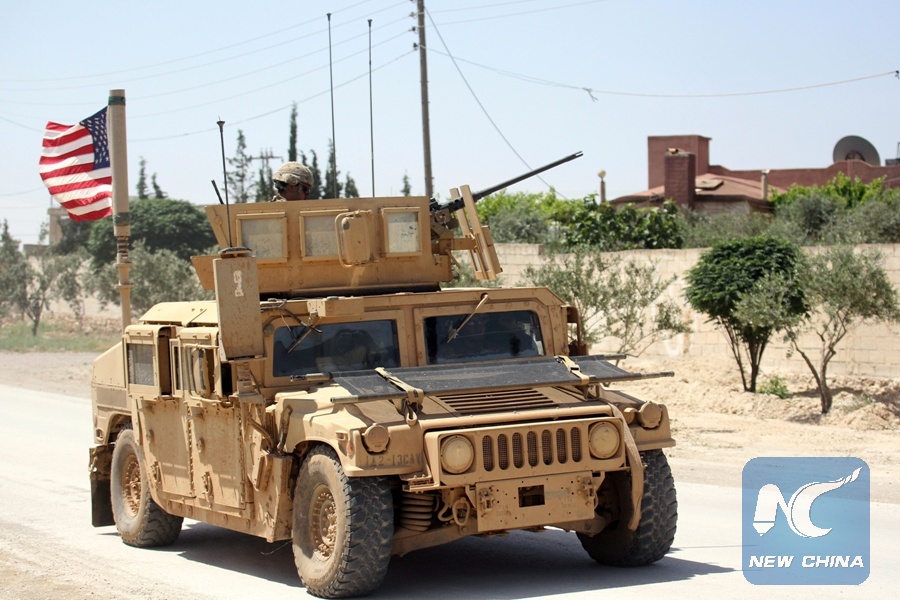 File Photo: The U.S. flag flutters on a military vehicle in Manbej countryside, Syria May 12, 2018. (Xinhua/REUTERS)