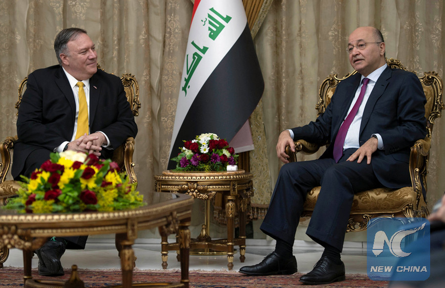 BAGHDAD, Jan. 9 (Xinhua) -- The U.S. Secretary of State Mike Pompeo Wednesday paid a surprise visit to the Iraqi capital Baghdad to meet with Iraqi leaders to discuss bilateral relations and cooperation.