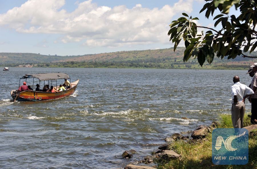 File photo shows tourists take boat at the north shore of Lake Victoria in Jinja of Uganda, where is the source of the River Nile, Oct. 24, 2009. (Xinhua/Liu Chan)