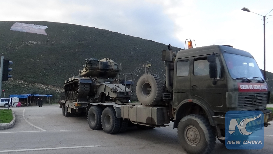 Photo taken on Jan. 14, 2019 shows a batch of military vehicles being deployed in Hatay province, Turkey. (Xinhua/Ihlas News Agency)