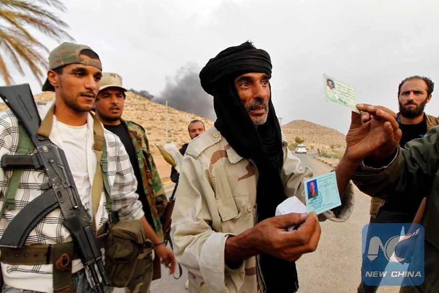 File Photo: A rebel fighter displays identification papers belonging to a Malian mercenary fighting for the forces of Libyan leader Muammar Gaddafi after taking over Bir Ayyad gate near the city of Zintan in the Western Mountains, some 120 km southwest of the capital Tripoli, June 3, 2011. (Xinhua/REUTERS)