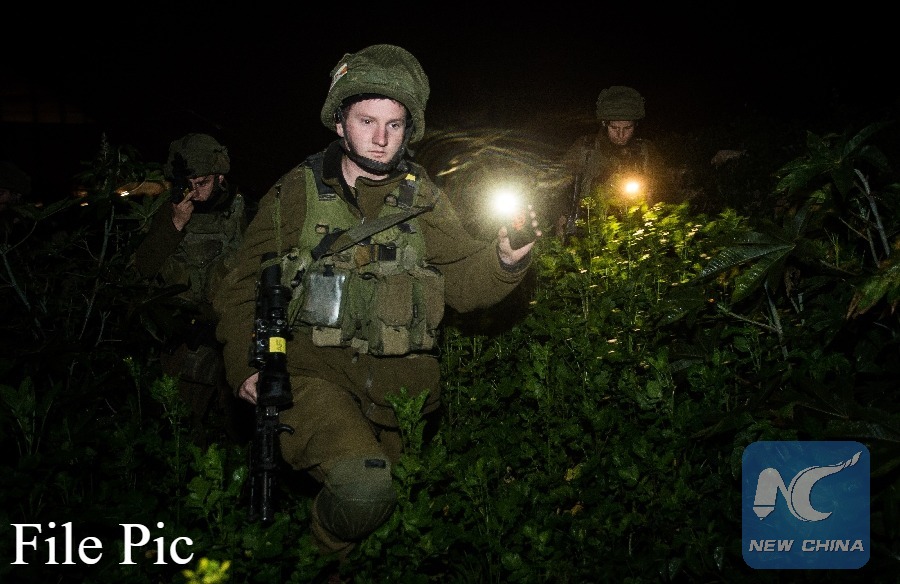 Israeli soldiers search for rockets fired from Lebanon after they landed in northern Israel, on Dec. 20, 2015. (Xinhua File photo)