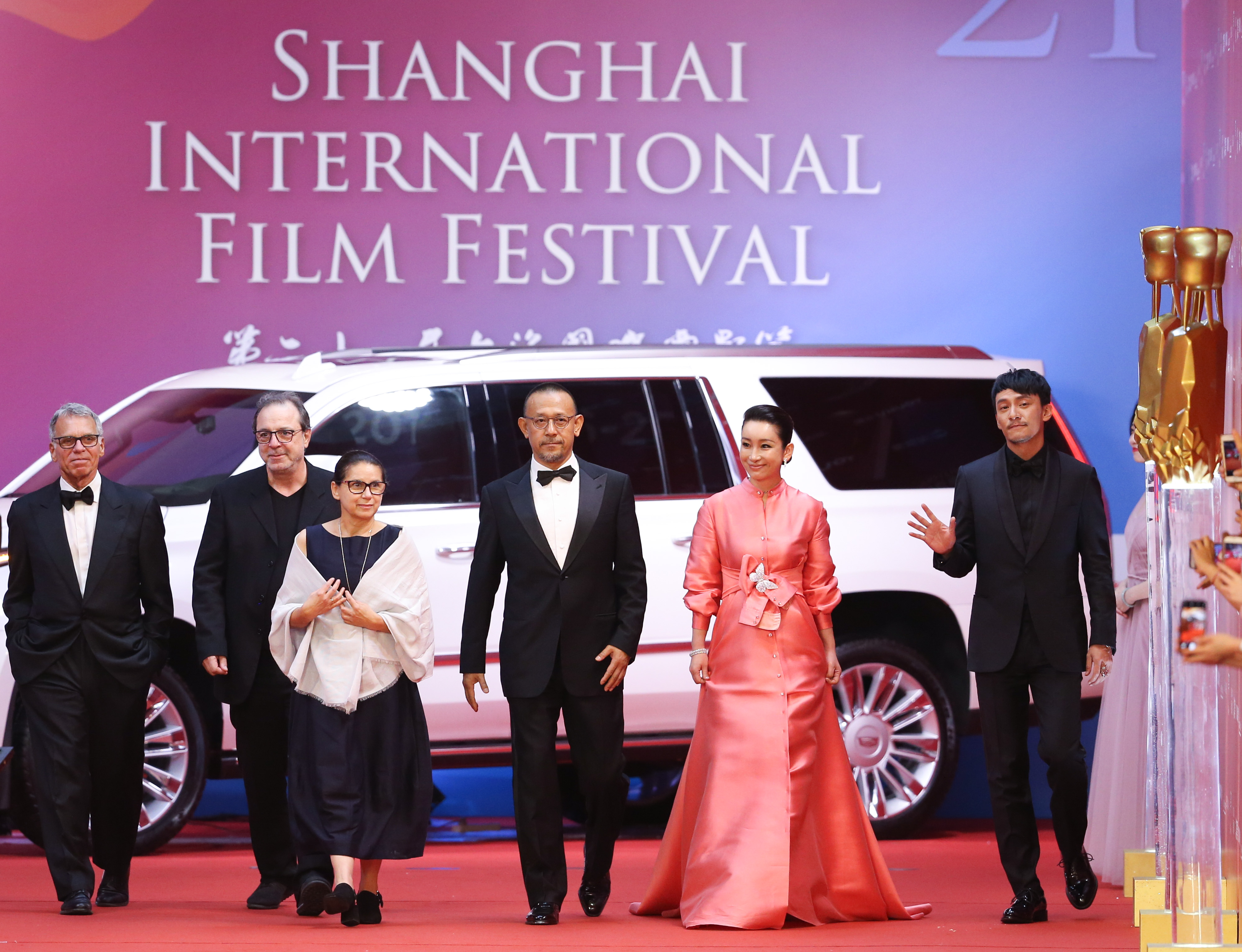Judges of Jin Jue Award appear on the red carpet for the opening ceremony of the 21st Shanghai International Film Festival in Shanghai, east China, June 16, 2018. (Xinhua/Ding Ting)
