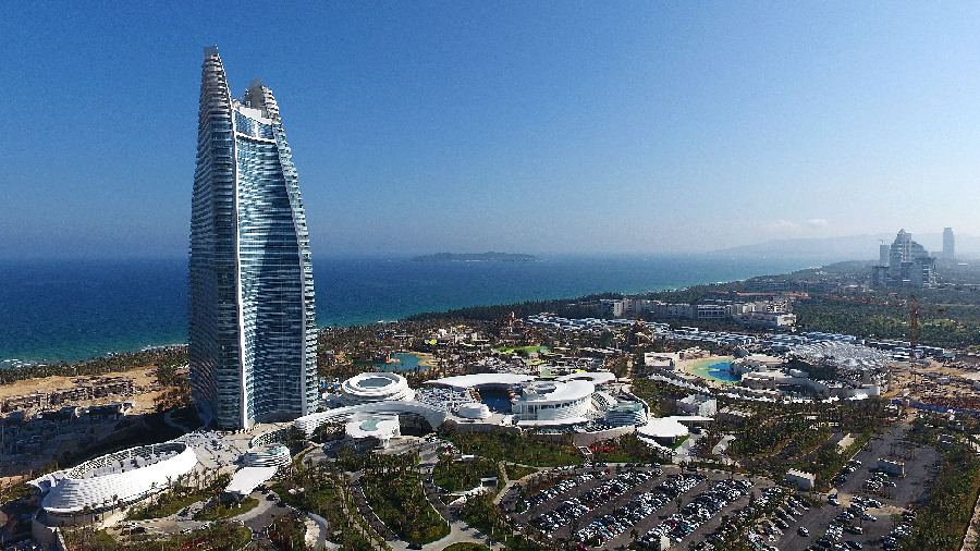 Aerial photo taken on Feb. 17, 2018 shows the view of Atlantis Hotel in Sanya, south China's Hainan. (Xinhua/Guo Cheng)