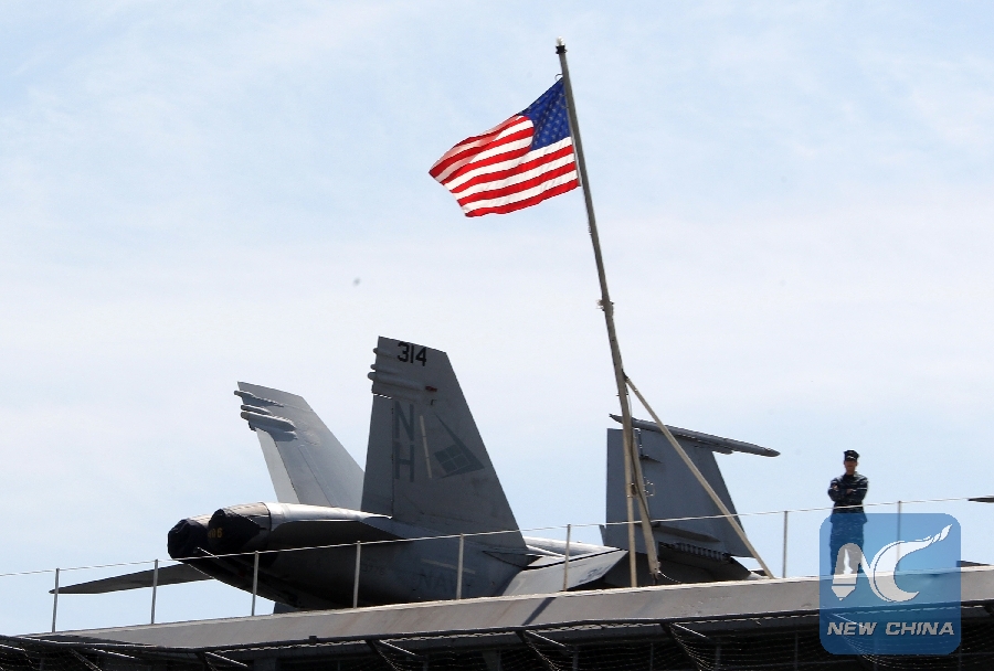 File Photo: A U.S. navy soldier stands on the nuclear-powered aircraft carrier USS Nimitz in Busan, South Korea, on May 11, 2013. (Xinhua/Park Jin-hee)