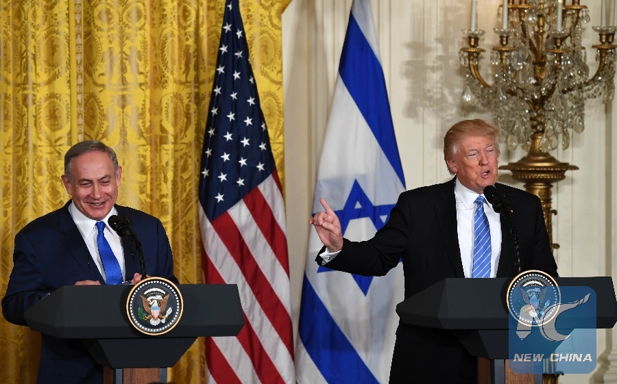 File Photo: U.S. President Donald Trump (R) gestures at a joint press conference with visiting Israeli Prime Minister Benjamin Netanyahu at the White House in Washington D.C., the United States, on Feb. 15, 2017. (Xinhua/Yin Bogu)