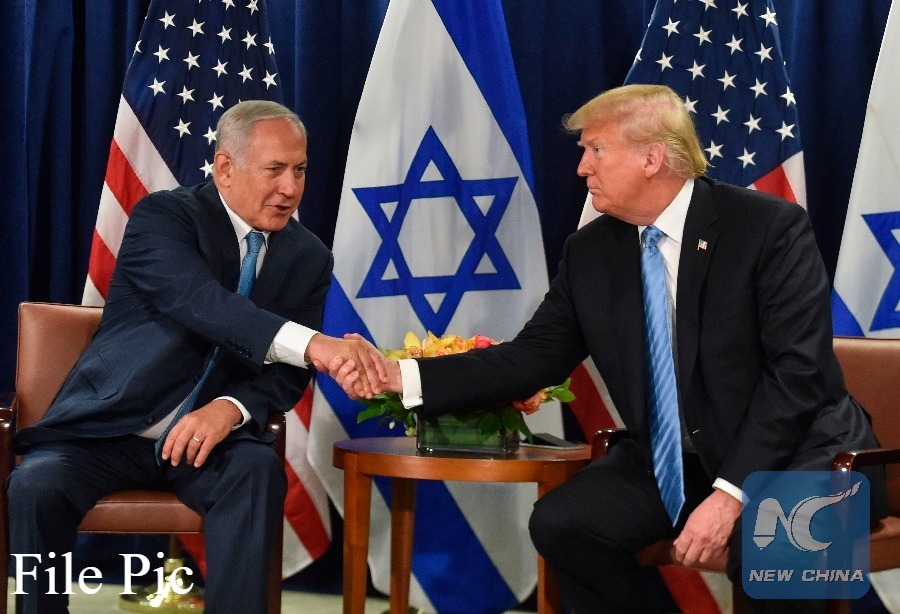 U.S. President Donald Trump shakes hands with Israeli Prime Minister Benjamin Netanyahu on Sept. 26, 2018 in New York on the sidelines of the UN General Assembly. (AFP File photo)